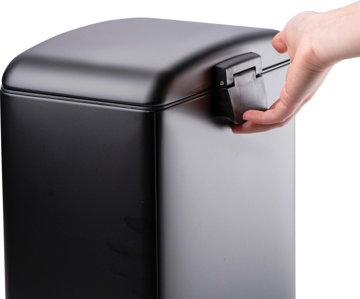 Þökk sé mjúkri lokunarbúnaði úrgangstunnunnar lokast lokið ekki harkalega og óþægileg lykt dreifist ekki hratt um herbergið.