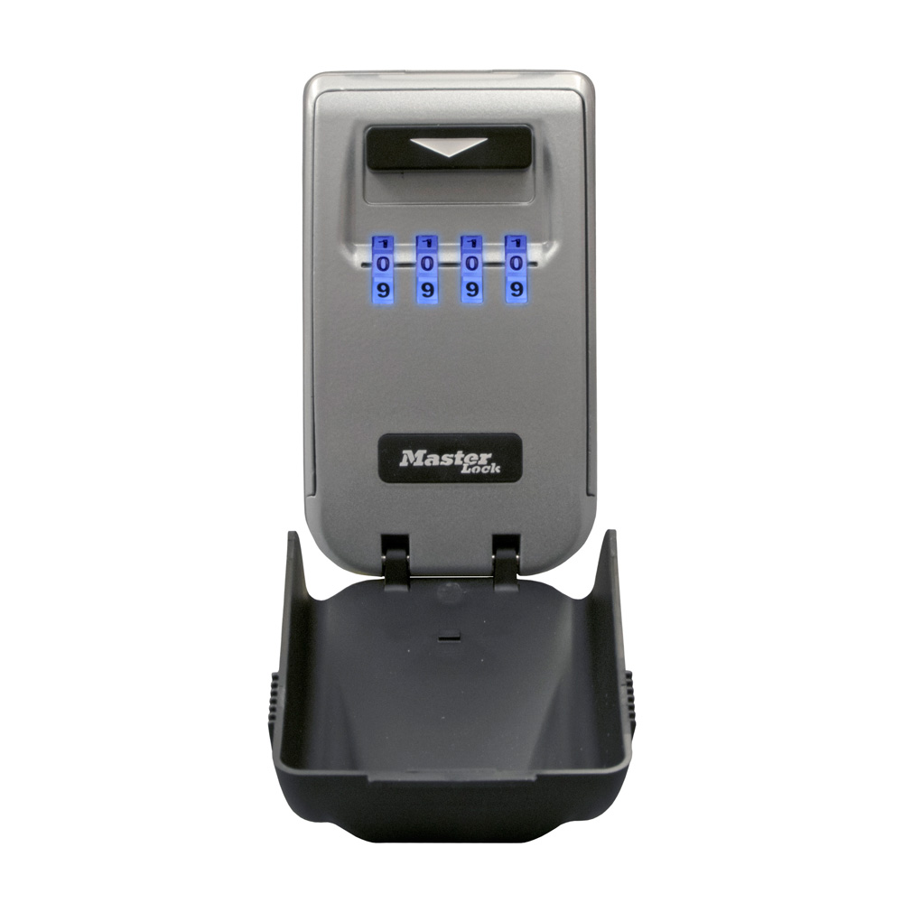 Master Lock nr. 5425EURD Light Up Dial Key Lock Box Select Access® er 72mm breiður úr málmi og er byggður til að endast. Pláss er fyrir marga lykla í boxinu. Hættu að fela lyklana undir dyramottunni eða undir blómapotti : Select Access® er fullkomin lausn til að deila lyklum. Veggfestingin býður upp á varanlega uppsetningu. Stóru, auðlesanlegu ljósskífurnar, ásamt möguleikum á endurstillingu, veita örugga geymslustað fyrir varalykla og aðgangskort. Takmörkuð æviábyrgð veitir hugarró frá vörumerki sem þú getur treyst.