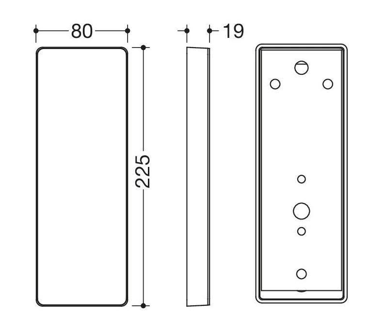 Rétthyrnd uppsetningarplata m/samsvörun, ferhyrnd hlíf, notuð til að halda á hreyfanlegum hjörum stuðningsslá 900.50.4…60, 80 mm á breidd, 225 mm á hæð, 19 mm djúp, festingarplata úr ryðfríu stáli, dufthúðuð í HEWI lit CV ( matt svört) m/hlífargrind í matt svörtu pólýamíði, platan á hlíf er úr hágæða ryðfríu stáli, litasamsvörun við ramma, duft -húðað í HEWI litum CV (matt svart), til uppsetningar. m/ætandi, prófað HEWI festiefni fyrir mismunandi veggkerfi.