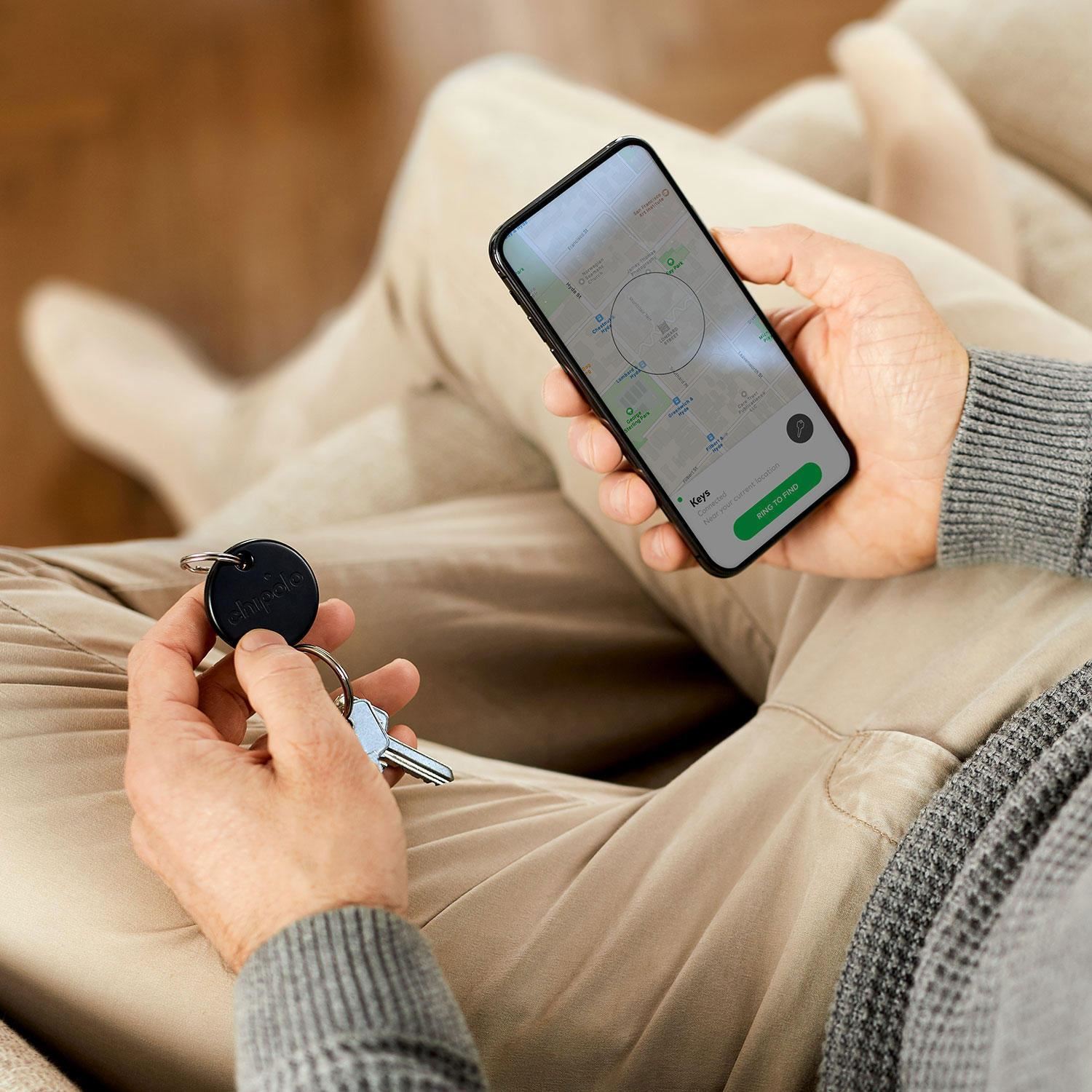 Notaðu Chipolo appið til að hringja í hlutina sem þú hefur glatað eða tvíklikkaðu á Chipoloinn til að finna símann.